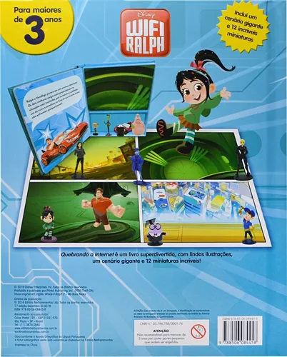 Quebrando a Internet é um livro superdivertido, com lindas ilustrações, um cenário gigante e 12 miniaturas incríveis. Título do livro: Wifi Ralph Quebrando A Internet Autor: Disney Idioma: Português Formato: Livro capa dura (hardcover) ISBN: 978-85-06-08445-8 Quantidade de Páginas: 12